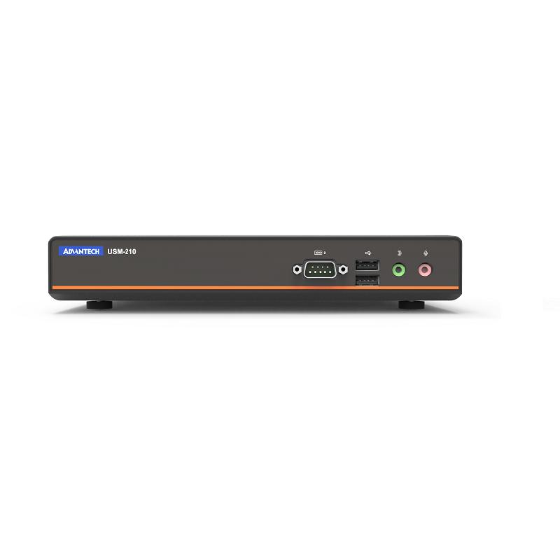 - 研華USM-210,一款多媒體數字標牌播放盒。作為無風扇微型計算機,其擁有卓越的全高清圖像處理能力,滿足多屏顯示、高性能、低成本的需求。USM-210共有4路HDMI,支持1路4K視頻,或4路1080P全高清視頻。此外,整合了研華WISE-PaaS/SignageCMS多媒體內容編輯軟件,實現遠程輕松制作并管理廣告牌。