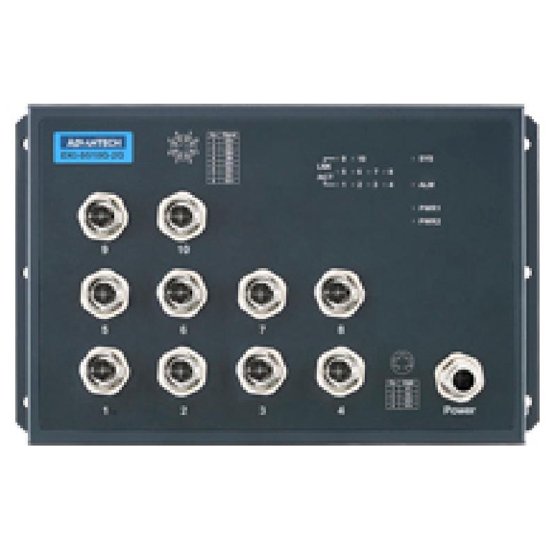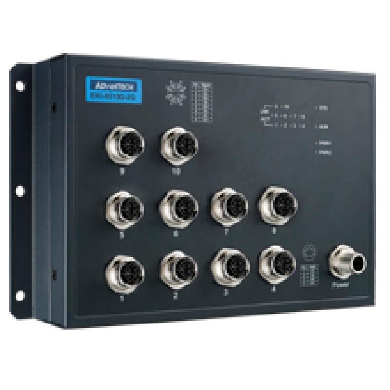 - The EKI-9500 series switch is designed for railway application with rugged and high EMC performance, being suitable for networking solution for rolling stock and wayside applications. The EKI-9500 series provides M12 connectors for Ethernet/ console/ relay/ power-input connections to ensure tight & robust connectivity, and thus to guarantee reliable operation against environmental disturbances such as vibration and shock on train. The EKI-9510G-2GH & EKI-9510G-2GL are unmanaged Ethernet switch that provide 8 x Gigabit Ethernet M12 X-code interface. Each of them also provides 2 x Gigabit Ethernet M12 X-coded ports with Bypass function to increase the reliability of the network. The EKI-9510G-2GH/ L features a "flat" design which can be easy deployed with its slender size and make network deployment easier in crowded carriage/ cabinet.