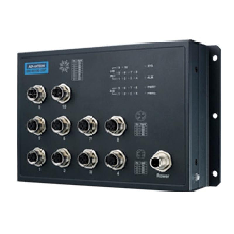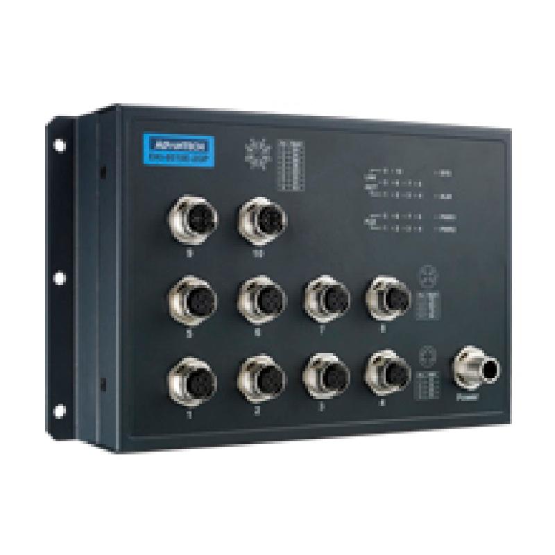 - The EKI-9500 series switch is designed for railway application with rugged and high EMC performance, being suitable for networking solution for rolling stock and wayside applications. The EKI-9500 series provides M12 connectors for Ethernet/ console/ relay/ power-input connections to ensure tight & robust connectivity, and thus to guarantee reliable operation against environmental disturbances such as vibration and shock on train. The EKI-9510E-2GPH & EKI-9510E-2GPL are PoE Ethernet switches that provide 8 x Fast Ethernet M12 D-coded ports with IEEE802.3af/at PoE(Power Over Ethernet) function. The PoE ports can provide up to 100Watts power budget for P.D. devices (such as camera, IP-phone and wireless access point). Each of them also provides 2 x Gigabit Ethernet M12 X-coded ports with Bypass function to increase the reliability of the network. EKI-9510E-2GPH/ PL features a "flat" design which can be easy deployed with its slender size and make network deployment easier in crowded carriage/ cabinet.