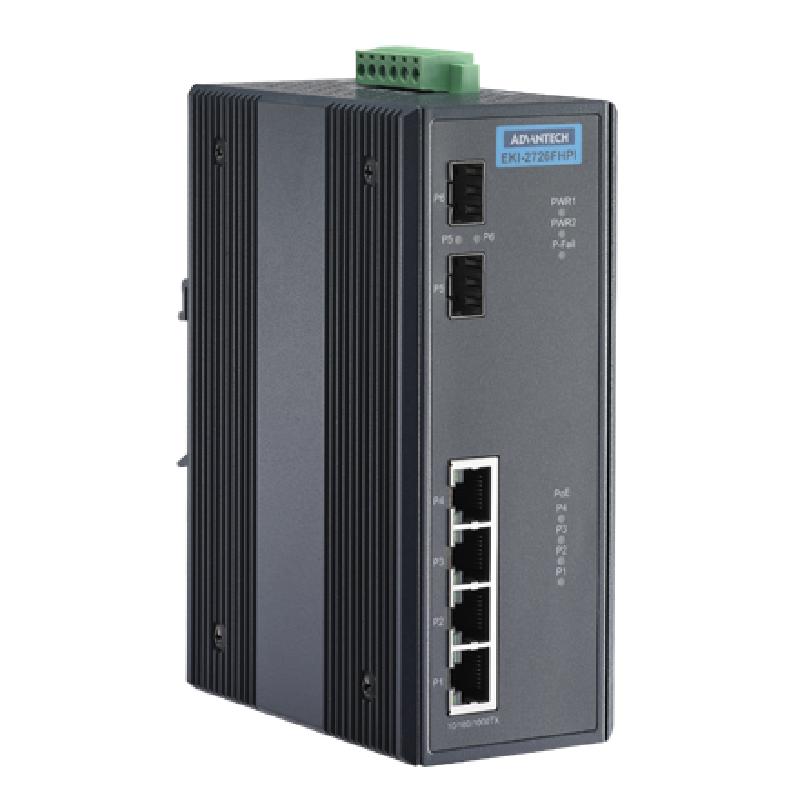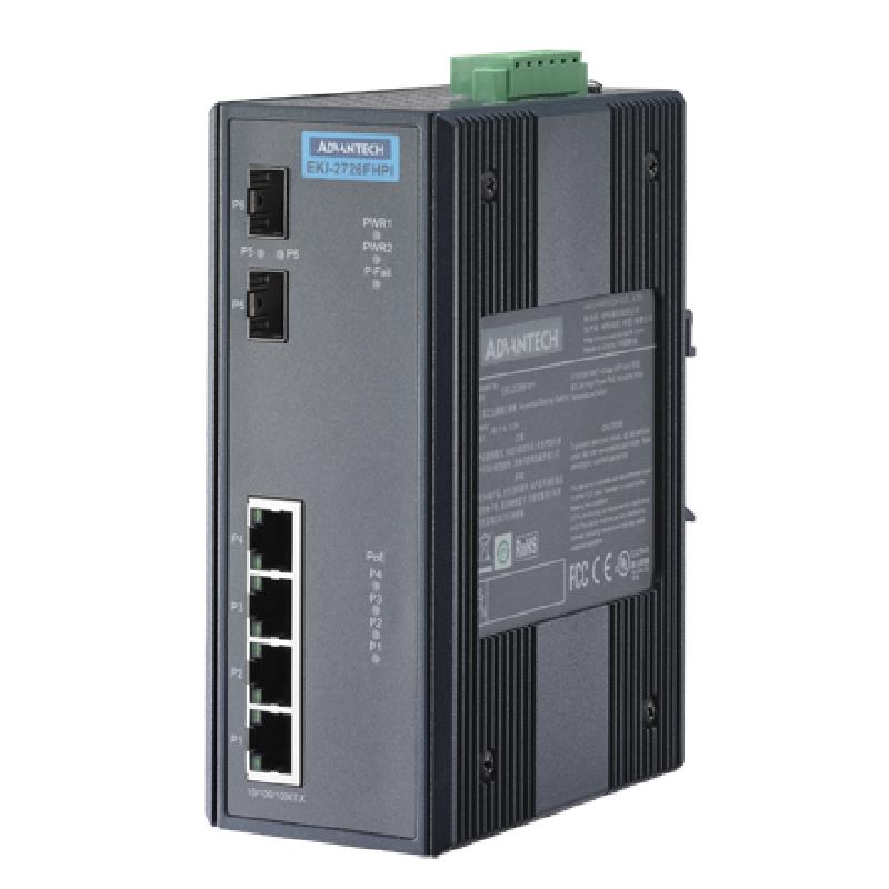 - EKI-2726 FHPI 交換機擁有 4 個 10/100/1000以太網PoE端口及 2 個 SFP 插座, 每個PoE端口可提供 30W電源輸出。作為經濟型解決方案,其支持寬工作溫度,滿足高可靠性及高標準工業應用要求。同時,EKI-2726 FHPI符合IEEE 802.3 at 標準。