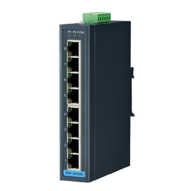 - The EKI-2528D/DI supports 8-port Fast Ethernet solution. The power is a 12 ~ 48 VDC redundant input design, and is secured with a double protection mechanism: Power Polarity Reverse Protect and an Overload Current Fuse. The former tolerates reverse power wiring while the later secures the system from overload currents. Each port of EKI-2528D/DI has 2 LED’s to show the link status transmission speed. It also provides a relay output for an event alarm. In the event of a power failure, the built-in LED will activate the alarm to notify administrators. Engineers can simply verify the hardware status by checking the LED, and have troubleshooting easy and quick. EKI-2528D/DI comes with compact metal housing that rates IP30 to help against from dusty industrial environments.