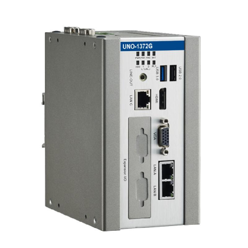 研華UNO-1372G 小型導(dǎo)軌安裝工業(yè)控制器,搭配英特爾?凌動(dòng)? 四核處理器及4GB DDR3L內(nèi)存,2×mPCIe,1×mSATA,2×COM,8×DI/O,3×USB,1×HDMI,1×VGA