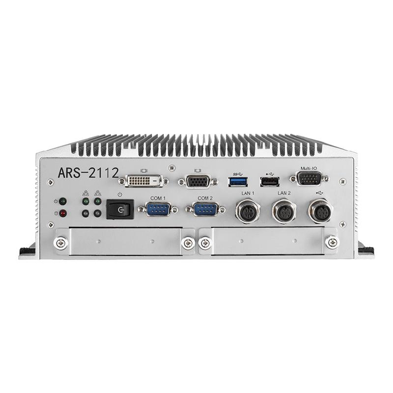 - ARS-2110采用無風扇設計,透過獨特機構設計達到TX(-40°C 至 85°C)的寬溫工作級別,確保于列車車輛中的可靠運作。通過完整EN 50155測試、支持 24V/72V/110V多種電源輸入電壓、搭配M12強固型連接、設計為IP50防塵防水防護。ARS-2110支持2個擴展槽,可搭配標準COM、SSD模塊以及各式訂制模塊,快速簡易提升擴充性。
