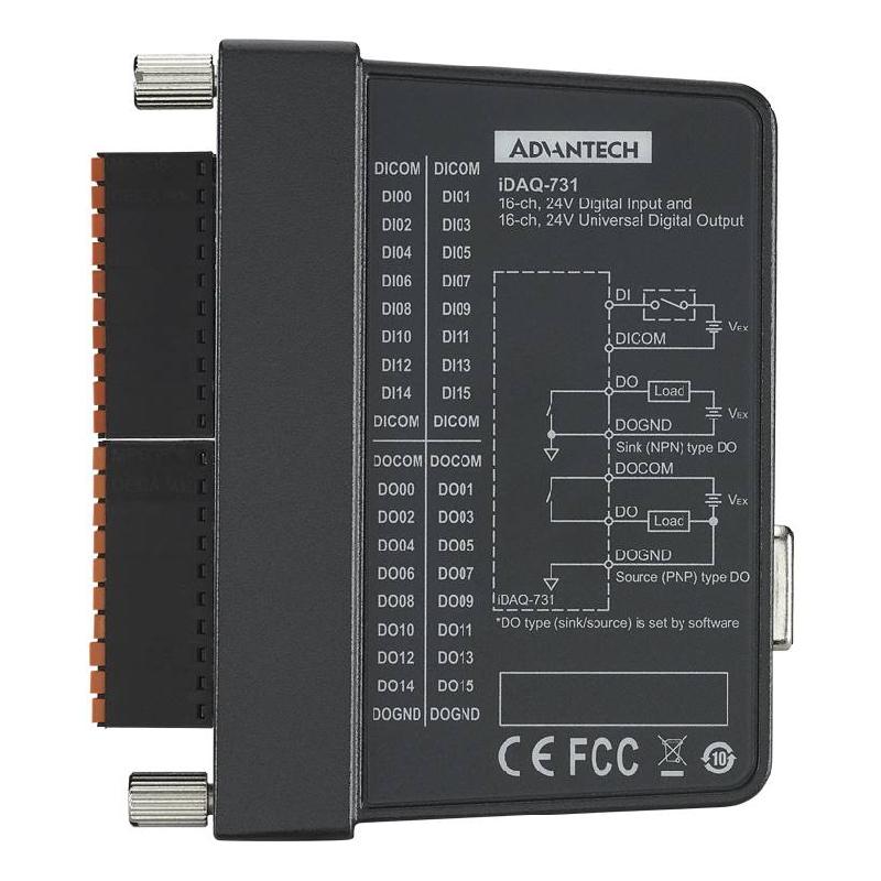 - 16-ch Isolated DI, 16-ch Isolated DO iDAQ Module
